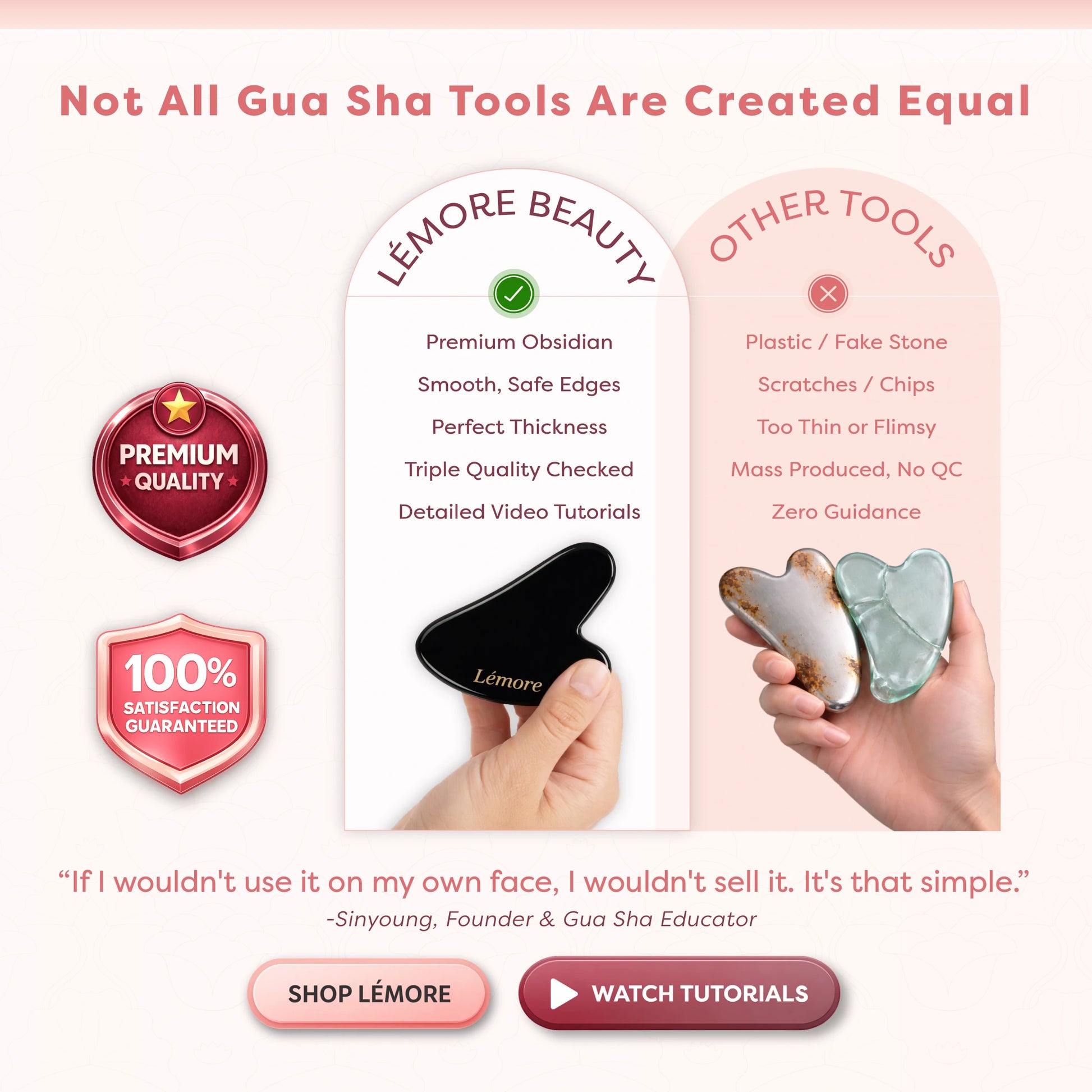 "I’ve tested everything: mass-produced tools, custom prototypes, different shapes, sizes, and materials. None of them met every standard, so I created one that does. Crafted with the ideal balance of shape, size, weight, and texture, our tool is triple quality checked to ensure perfection. This is THE tool I trust for my anti-aging routine. And I guarantee you'll love it too." — Sinyoung, Founder & Gua Sha Expert